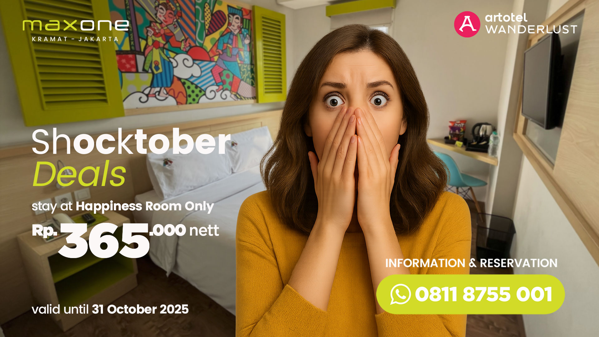 PRABA INSIGHT – JAKARTA – Bulan Oktober biasanya identik dengan labu, kostum seram, dan film horor yang bikin jantung dag-dig-dug. Tapi tenang, di Maxone Hotel Kramat Jakarta, tidak ada “trick”, yang ada cuma “treat”. Lewat promo “Shocktober Deals”, hotel yang berlokasi di jantung Jakarta ini justru menghadirkan kejutan manis untuk para tamunya mulai dari harga menginap yang bikin dompet bahagia sampai bonus es krim saat check-in.